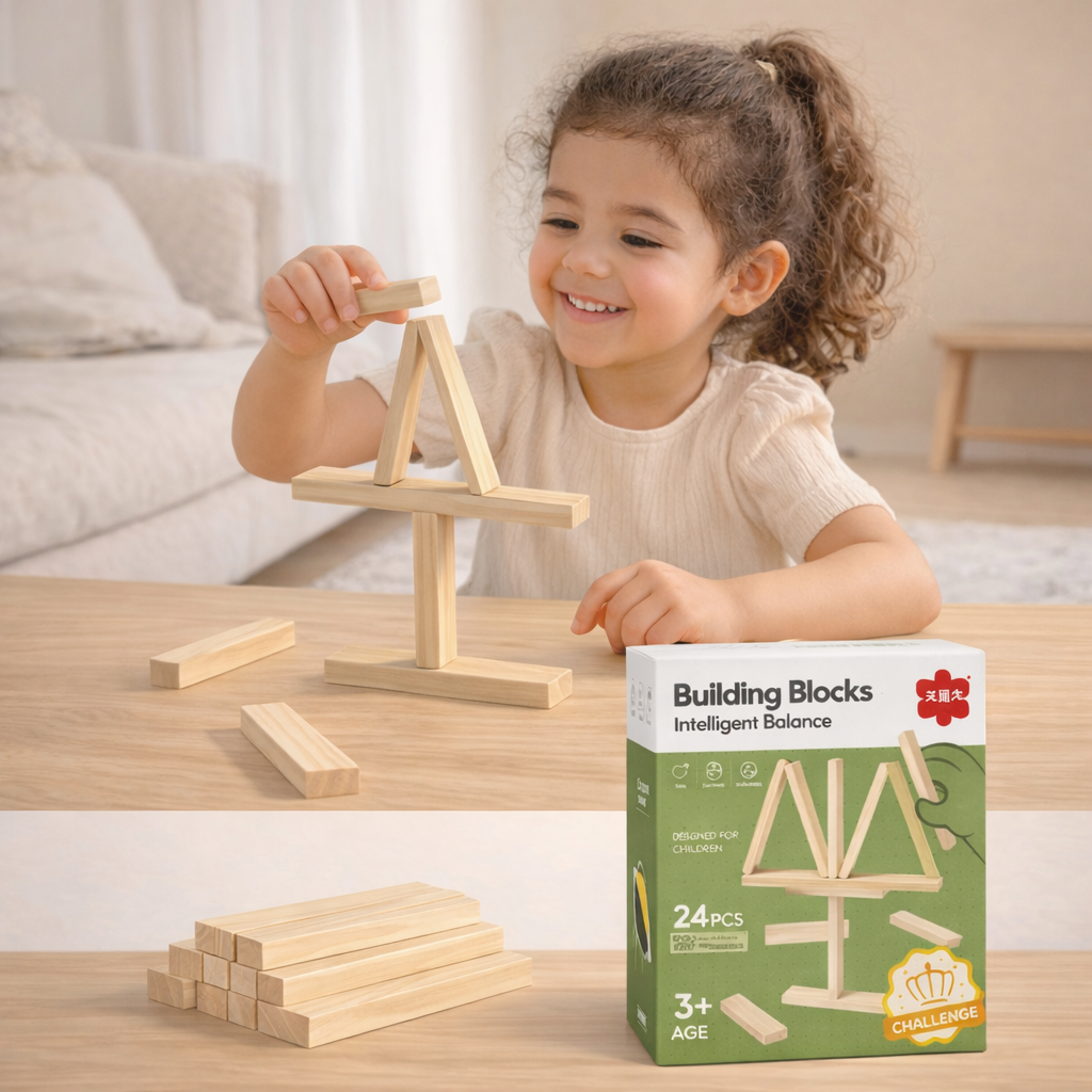 Juego de equilibrio en madera diseñado para niños de 3 a 7 años. Desarrolla concentración, motricidad y pensamiento lógico mientras se divierten sin pantallas