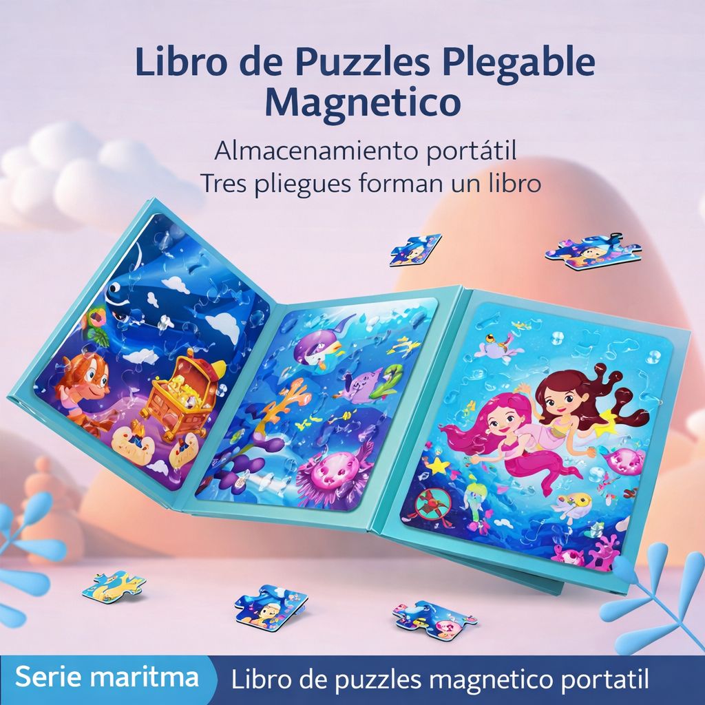El Libro Puzzle Magnético 3 en 1 – Mundo Marino es una herramienta de juego didáctica diseñada para potenciar el desarrollo cognitivo y motor de los niños a través de la exploración y el aprendizaje activo.