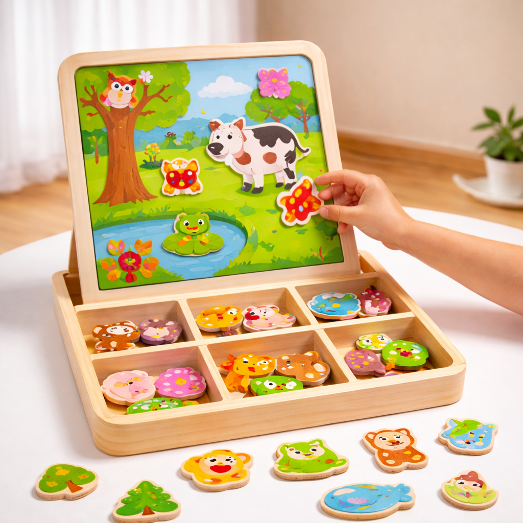 El Rompecabezas Montessori Animales del Bosque es una herramienta de aprendizaje diseñada para acompañar el desarrollo cognitivo y creativo en la primera infancia.
